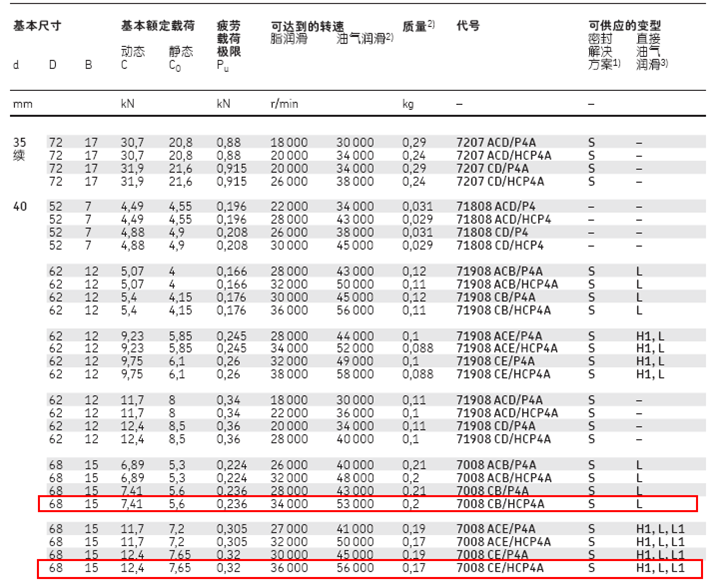 1、中型(E)陶瓷球:以兩款帶密封的SKF S7008 CE/HC對(duì)比SKF S7008 CB/HC為例,動(dòng)載荷高出67%,靜載荷高出36%,