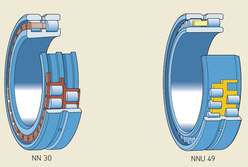 NNU 49系列軸承的截面高度非常低,這種設(shè)計比NN 30系列軸承具有更高的剛度,但承載能力稍差。