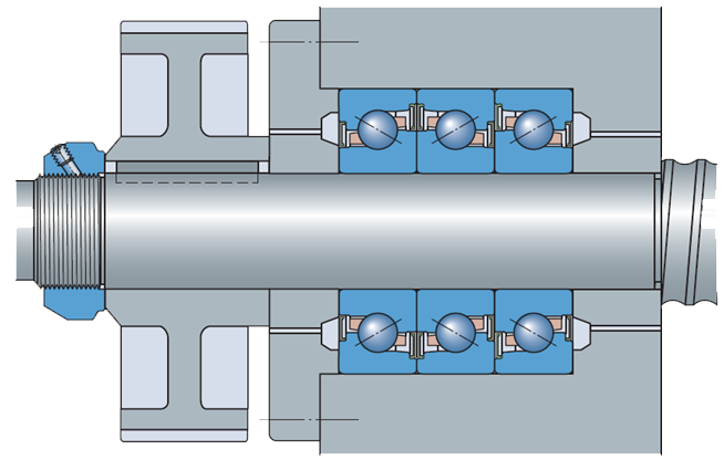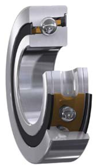 單列推力角接觸球軸承可以在兩個(gè)端面采取整體非接觸密封 (代號(hào)后綴2RZ ),密封圈和內(nèi)圈擋肩形成了一個(gè)極狹窄的間隙,因此轉(zhuǎn)速能力不變。